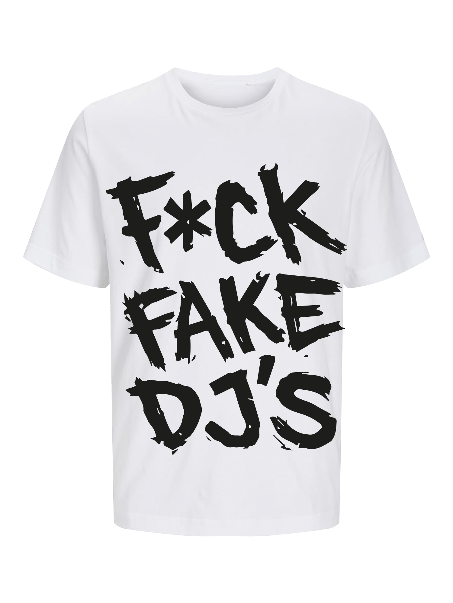 The F*ck Fake DJs T-shirt from Merchandise Sunny D is a powerful statement for true music lovers and DJ fans.