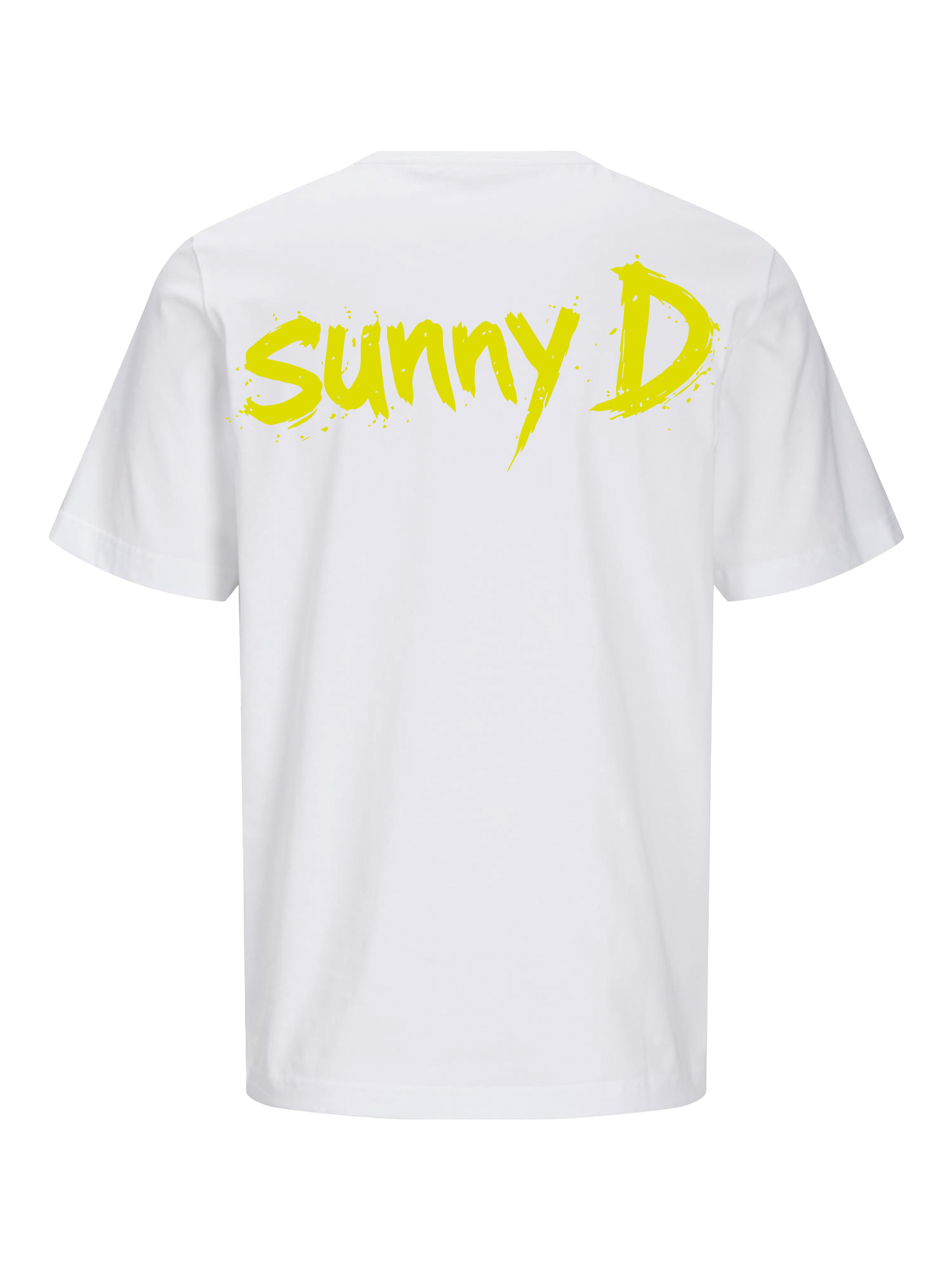 Let your style shine with the Sunny D Graffiti Logo T-shirt from Merchandise Sunny D. This striking shirt combines minimalist streetwear with a powerful graffiti look. The back features a large Sunny D logo in bright yellow, inspired by urban art and the energetic vibe of DJ and festival culture.
