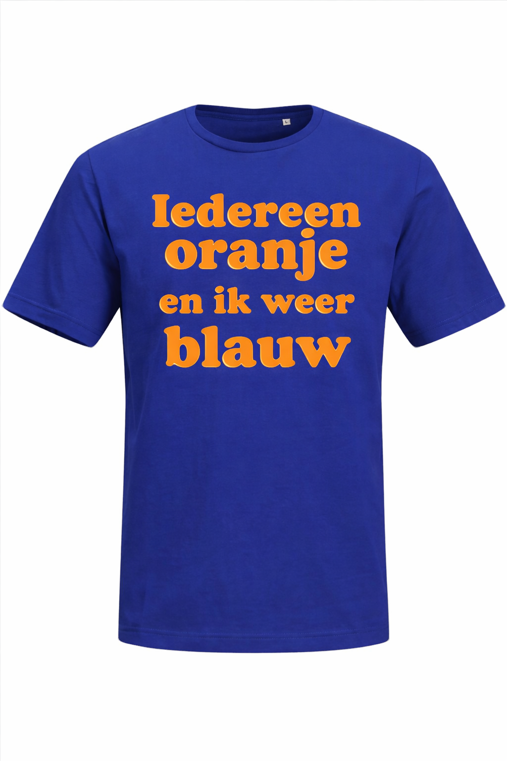 Unisex shirt. Loop alvast een dag op voor met de tekst Iedereen oranje en ik weer blauw.