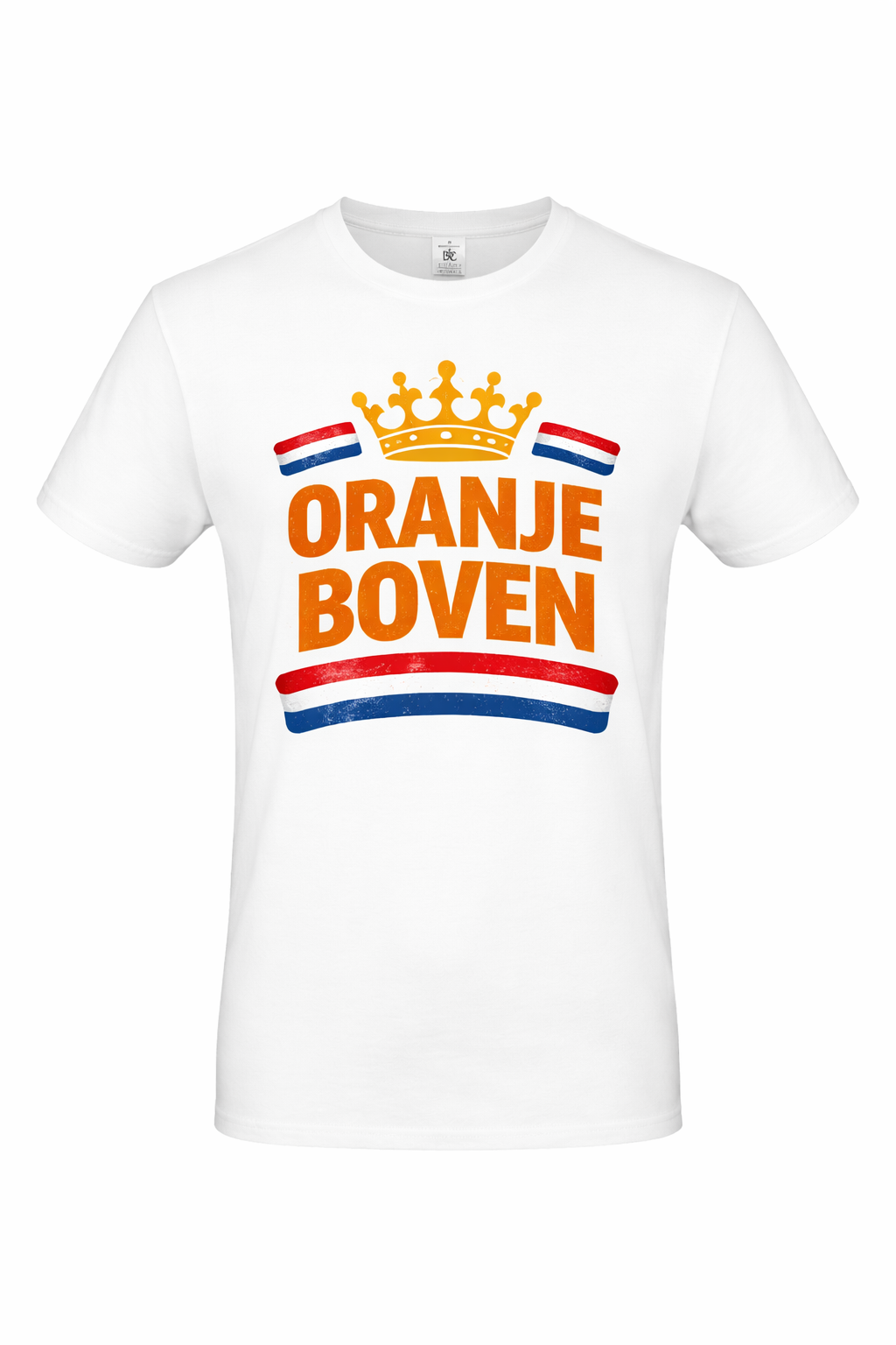 Wit shirt voor koningsdag met oranje boven aan de voorkant