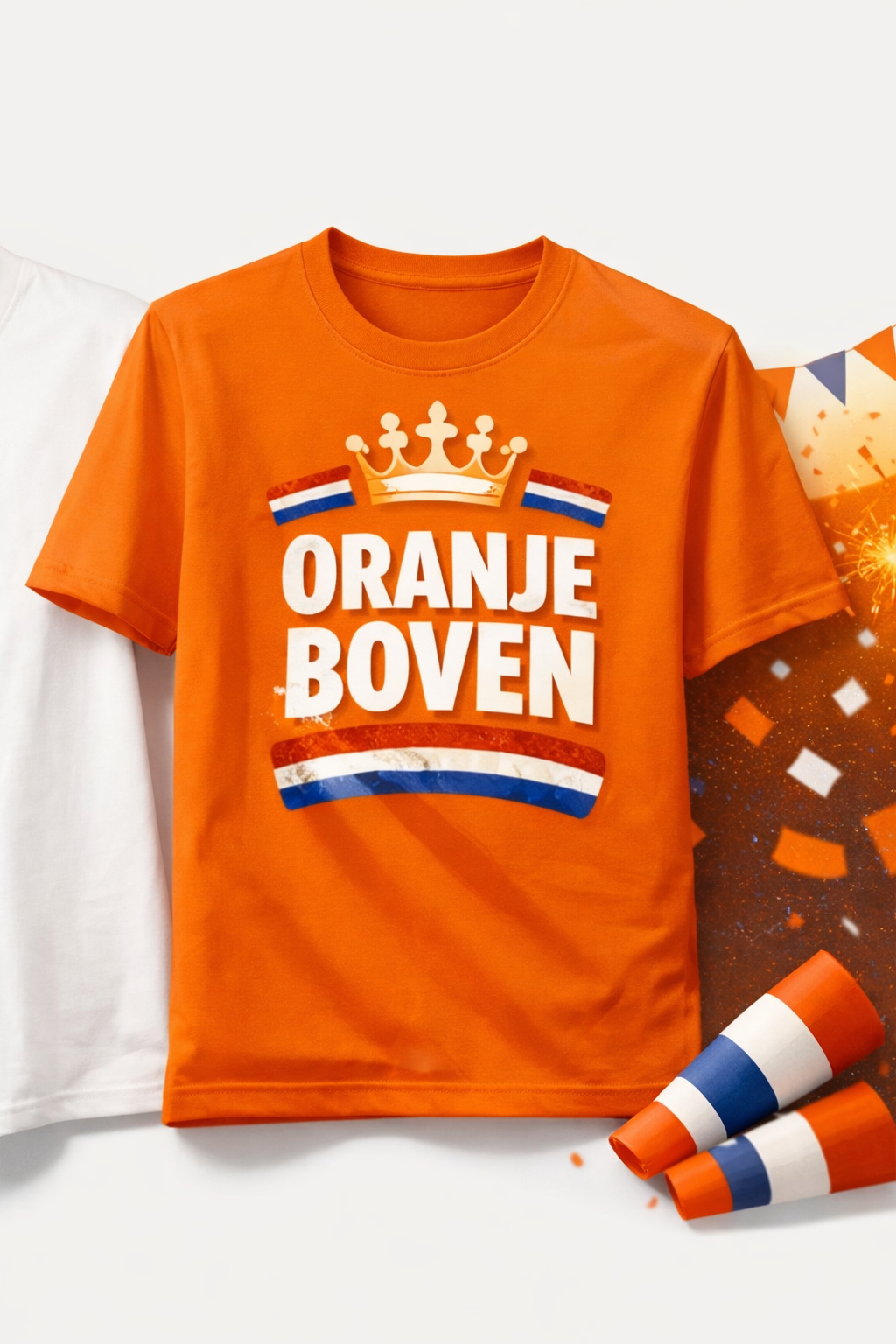 Oranje shirt voor koningsdag met oranje boven aan de voorkant